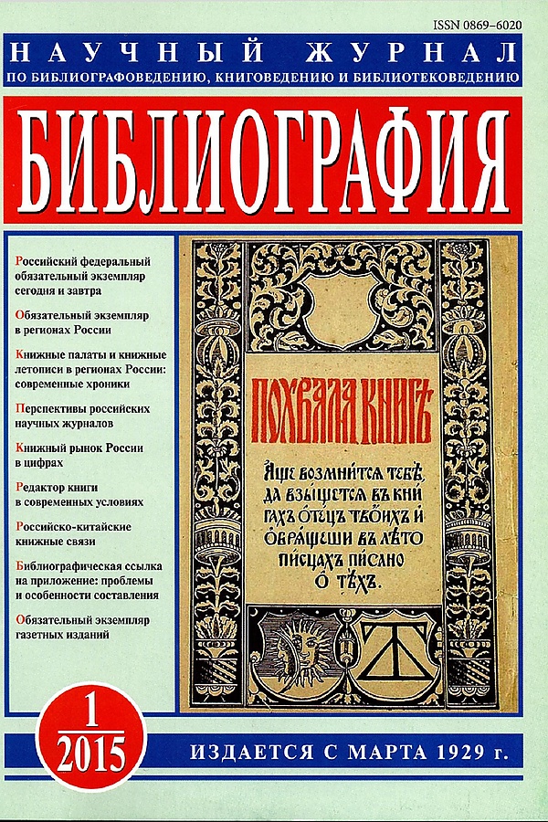 | Библиография. Научный журнал по библиографоведению и книговедению | |