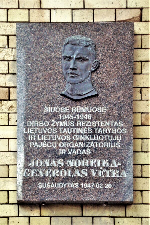 На здании висит мемориальная доска литовскому коллаборационисту Йонасу Норейке, которую самолично уничтожил адвокат Станисловас Томас 8 апреля 2019 года, а 19 апреля по распоряжению мэрии восстановлена[6].