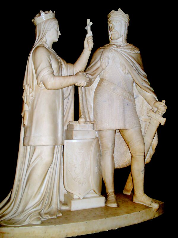 В фойе первого этажа у входа стоит скульптура «Ядвига и Ягелло» польского скульптора Оскара Томаша Сосновского (1810—1888).