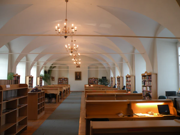 Древнейший документ, хранящийся в библиотеке, — акт о дарении земли 1209 года. Старейшая рукописная книга — „Psalterium Mariae“, иллюстрированный сборник текстов и гимнов, посвящённых Деве Марии, на латинском языке (пергамент, XIV век). Самая старая печатная книга в библиотеке — инкунабула „Opus de universo“ Рабана Мавра (Страсбург, 1467)[5].