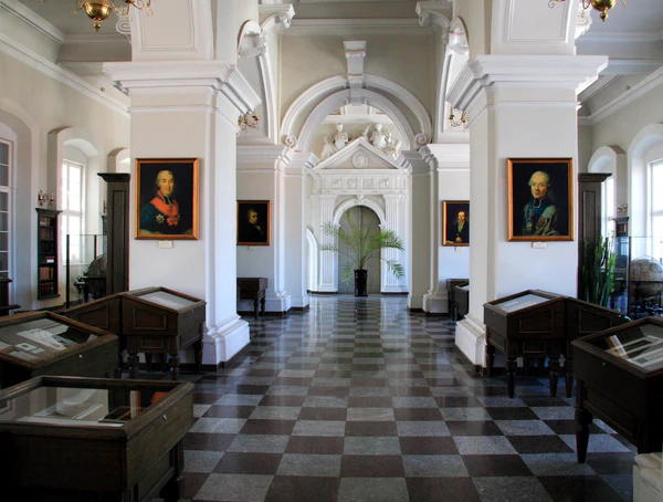 После упразднения университета (1832) зал перешёл в ведение Медико-хирургической академии. С упразднением академии (1842) зал изредка использовался для публичных собраний. Образованная в 1855 году Виленская археологическая комиссия получила это помещение (и два других зала над ним на втором и третьем этажах) и разместила в зале Музей древностей. В 1865 году зал и часть музейных коллекций был отведён под Виленскую публичную библиотеку. Художник В. В. Грязнов в 1867 году заменил классицистическую роспись орнаментом в псевдовизантийском стиле; картины Смуглевича со сводов были сняты.