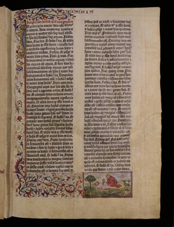Миниатюры располагаются на нижнем поле страницы. Такое расположение было характерно для маргиналий в рукописных книгах. Рисунки не имеют подписей и прямых отсылок к тексту, однако практически все иллюстрируют текущую главу и только в редких случаях изображают сюжет из другого текста (например миниатюра «Юдифь и Олоферн» помещена в Первую книгу Царств, а не в Книгу Юдифи, для которой этот сюжет основополагающий) или повторяются (например сцена «Давид, выливающий воду во славу Господа» используется дважды: во Второй книге Царств и в первой книге Паралипоменон)[26].