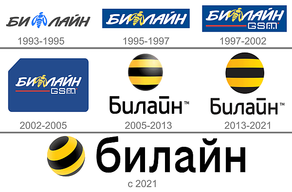 В апреле 2005 года оператор провёл масштабную смену корпоративного стиля: фирменными цветами стали чёрный, жёлтый и белый, в оформлении стала использоваться тема чередующихся между собой чёрных и жёлтых полос. Был полностью изменён логотип (представлял собой круг с чёрными и жёлтыми полосами, и надписью «Билайн» рядом с ним), разработанный британским дизайнером Майлзом Ньюлином. Редизайн был проведён агентством Wolff Olins.[13][14] Через год, в 2006 году появился новый слоган «Живи на яркой стороне».