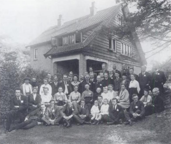 Чтобы будущие участники смогли присоединиться к международной мирной конференции, проводимой 4-19 октября 1919 года,[2] Эрнест и Эвелина Флетчер, Кис Бек и Генри Ходжкин опубликовали приглашение к первой из трех встреч. На встрече присутствовало пятьдесят участников, среди которых были люди из Германии, Норвегии, Швеции, Дании, Финляндии, Франции, Швейцарии и США. Среди известных участников были Фридрих Зигмунд-Шульце, Дж. Б. Гугенхольц, Матильда Вреде, Лилиан Стивенсон, Леонард Рагац и Пьер Серезоль .[3][4] Многие из участников отказались от военной службы по соображениям совести, и были арестованы во время Первой мировой войны. Серезоль был назначен секретарем конференции из-за его хороших языковых навыков.