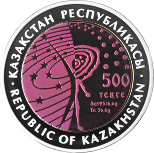 - номиналом 100 и 500 тенге из серебра 925 пробы и тантала в качестве proof.