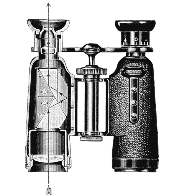 В призматических биноклях для повторного переворачивания изображения (а заодно для укорачивания бинокля) используются призмы. На практике применяются призмы Порро, Аббе и Шмидта — Пехана. Последние два типа призм известны как «roof» («крышеобразные»).