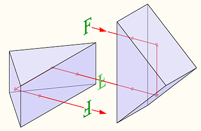 Призмы Аббе названы по имени изобретателя Эрнста Аббе, сотрудника фирмы «Карл Цейс». Существуют три типа призм Аббе: одна дисперсионная[4] и два типа оборачивающих призм Аббе: тип 1 (призма Аббе — Кёнига) и тип 2. В современных биноклях с прямыми трубами используется призма Аббе — Кёнига, запатентованная в 1905 году. Центральный луч в каждой трубе несколько раз меняет направление, но в конце возвращается на первоначальную прямую. Расстояние между центрами объективов равно расстоянию между центрами окуляров (то есть расстоянию между зрачками). Поэтому невозможно применение объективов диаметром больше 65 мм. Недостатками призм Аббе — Кёнига считались также потери света на некоторых отражающих поверхностях и на поверхностях склейки. Но в дорогих биноклях специальные технологии сильно уменьшают потери. Кроме того, в призмах Аббе — Кёнига существует фазовый сдвиг между лучами света, проходящими через разные части призмы, что уменьшает яркость и контрастность изображения. Однако, в дорогих биноклях имеется фазокорректирующее покрытие, устраняющее этот недостаток. Преимуществом призм Аббе — Кёнига является компактность бинокля. Также для таких призм проще сконструировать герметичный прибор.