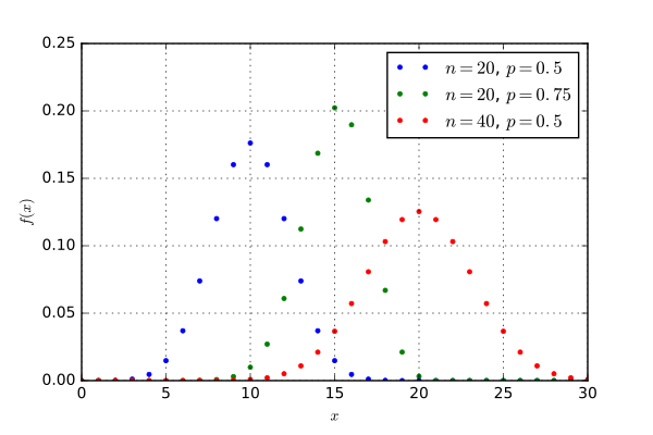 Случайную величину обычно интерпретируют как число успехов в серии из одинаковых независимых испытаний Бернулли с вероятностью успеха в каждом испытании.