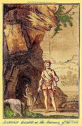 Согласно другим данным, они убили жену и рабочего и напали на мужчину, у которого оказался пистолет; звук выстрела привлёк находившихся неподалёку стражников, которые преследовали членов клана до пещер, но потеряв след и не найдя следов лодки (ранее считалось, что людоеды приходили из моря), устроили засаду и при отливе увидели вход в пещеру