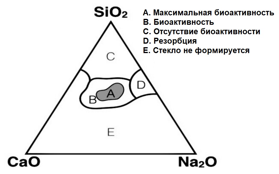 | Bioglass 60S3.8[22] | 60.1 | 2.6 | 19.6 | — | — | 17.7 | — | — | — | — | — | — | фосфатная плёнка не образуется |