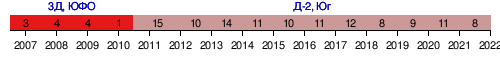 | 2011/12 | Второй дивизион | Юг | III | 15 из 18 | 34 | 7 | 12 | 15 | 32-40 | 33 | 1/128 | |