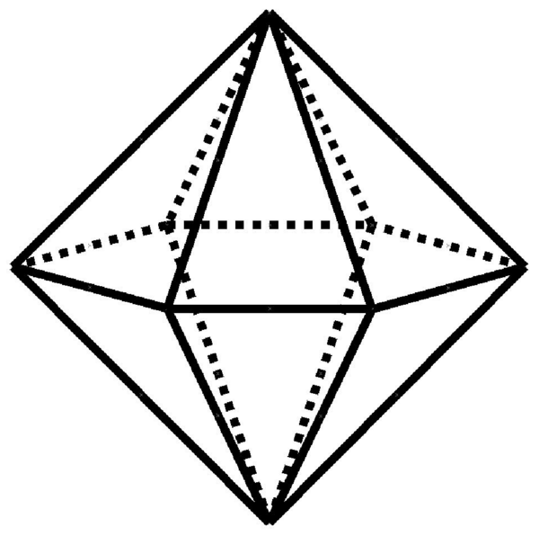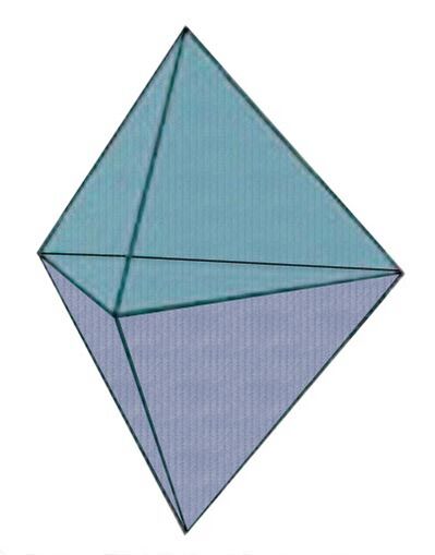 Соединение двух тетраэдров может дать и более сложную форму в виде тригональной звёздной бипирамиды. Реальные формы кристаллов и алмазов значительно отличаются от приведённых выше идеальных форм, которые рассматривает геометрия и математика.