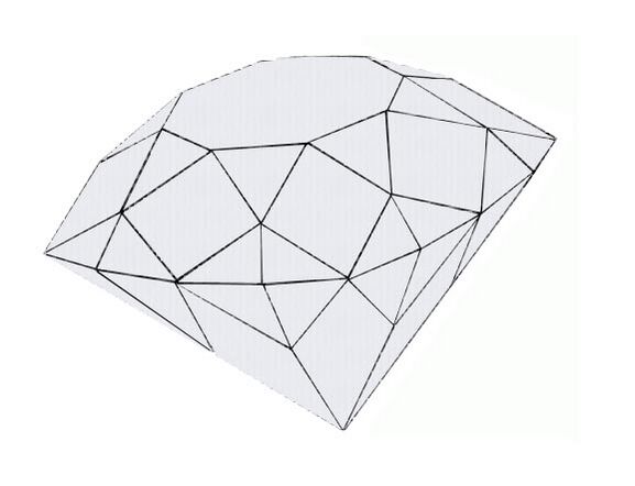 Грани — плоские поверхности, ограниченные рёбрами, треугольной или трапецеидальной формы.