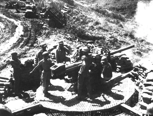 9 апреля 1945 года все три полка 40-й пехотной дивизии выдвинулись на восток в горную местность острова. Японские солдаты упорно сопротивлялись, а их позиции были хорошо защищены. Помимо этого японцы проводили ночные атаки на позиции американских войск. Вскоре американцы стали применять тактику проникновения на гору маленькими группами, с целью выбить японцев с их позиций. 4 июня японцы покинули свои позиции и отступили дальше в горы острова, где сражались до конца войны[3].