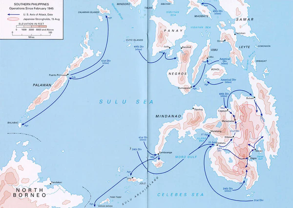 Битва за Висайские острова, которую провела 8-я армия США, прошла успешно. Дивизия понесла маленькие потери по сравнению с японскими войсками. 40-я пехотная дивизия на острове Панай и северо-восточной части острова Негрос потеряла 390 солдат и офицеров убитыми и 1025 ранеными, а японцы потеряли 4080 убитыми и ещё 3300 погибло от болезней и голода. 23-пехотная дивизия на островах Себу и Бохоль потеряла 417 убитыми и 1700 ранеными, а японцы 5750 убитыми и 500 ранеными.