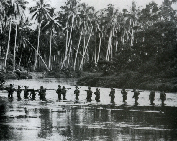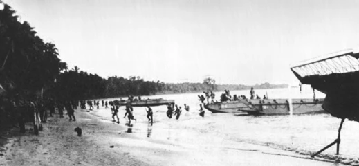 19.8.1942 г., через две недели после занятия плацдарма на о. Гуадалканал частями 1-й ДМП США, 2-я дивизия эсминцев Императорской Японии у м. Тайву провела ночную высадку двух батальонов (1 тыс. л/с) 4-го полка с недельными запасами продовольствия и боеприпасов. Ночным переходом силы выдвинулись на 35 км к западу в сторону оборонительной линии 1-й ДМП на м. Лунга[47][48]. Без доразведки сил и средств противника подразделения 4-го полка к вечеру следующего дня вышли к позициям противника у на м. Лунга (б. Аллигаторов, т. н. «р-н реки Илу») и с хода атаковали его на восточной оконечности мыса, неся потери (в истории боевых действий на Тихоокеанском ТВД бой описывается как Бой у р. Тенару).