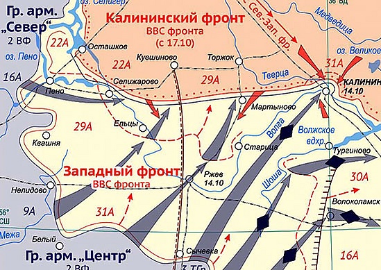 3-я и 4-я танковые группы атаковали позиции Красной армии на юго-западном московском направлении и одновременно на нескольких участках фронта[12]. Адольф Гитлер, уверенный в быстром и неминуемом захвате советской столицы, в приказе солдатам и офицерам восточного фронта от 2 октября 1941 года заявил: