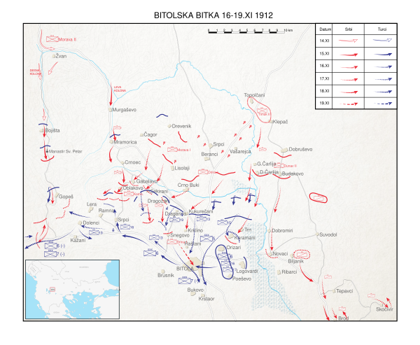 Вечером 17 ноября сербы переломили ход сражения, сумев занять высоты у Облаково. На следующий день прибытие тяжелой артиллерии позволило сербам уничтожить османские батареи и продвинуть вперед пехоту, которая прорвалась через левый фланг турецких позиций. Это привело к распаду османского фронта и беспорядочному отступлению. Сербы вошли в Битолу 19 ноября. С завоеванием города сербы могли осуществлять контроль запада Македонии, в том числе и символически значимого города Охрид[5].