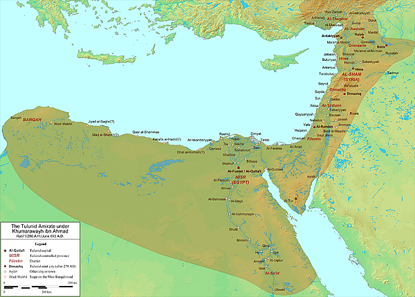В 868 году тюркский гулям Ахмад ибн Тулун сумел стать наместником Аббасидского Египта. Используя огромные богатства региона для собрания собственной армии и эксплуатируя нестабильность центрального правительства Аббасидов, в течение следующих лет он стал фактически независимым от последнего, хоть и продолжал признавать сюзеренитет аббасидского халифа аль-Мутамида Алаллаха над собой и пересылать ему часть налоговых поступлений[2]. Однако брат халифа, Абу Ахмад аль-Муваффак, которому и принадлежала фактическая власть в халифате, был недоволен растущей властью Ибн Тулуна, и поэтому в 877 году он попытался свергнуть последнего, но безуспешно. В следующем году Ибн Тулун расширил свою зону контроля на Сирию вплоть до границы с Византийской империей на севере и Ракки в Западной Джазире на востоке, непосредственно примыкая к Ираку, столичной провинции Аббасидов[3].