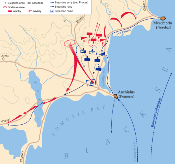 Главнокомандующий Лев Фока едва сумел бежать в Месемврию. Большинство византийских полководцев погибли. Преследуемое болгарской армией, византийское войско было полностью уничтожено. Продолжатель Феофана так описывал разгром греков: