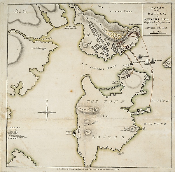 13 июня 1775 года лидеры американских повстанцев узнали, что англичане собираются укрепить высоты на Чарльстонском полуострове, чтобы обеспечить себе полный контроль над бостонской гаванью. Чтобы предотвратить это, 1200 колонистов под командованием Уильяма Прескотта заняли высоты Банкер-Хилл и Бридс-Хилл. За ночь они возвели редут на Бридс-Хилл и несколько второстепенных укреплённых линий. На рассвете 17 июня англичане обнаружили отряд Прескотта на полуострове и решили атаковать его. Две атаки американских позиций были отбиты с тяжёлыми потерями для англичан, но третья увенчалась успехом и англичане захватили редут. Колонисты отступили с полуострова в Кэмбридж.