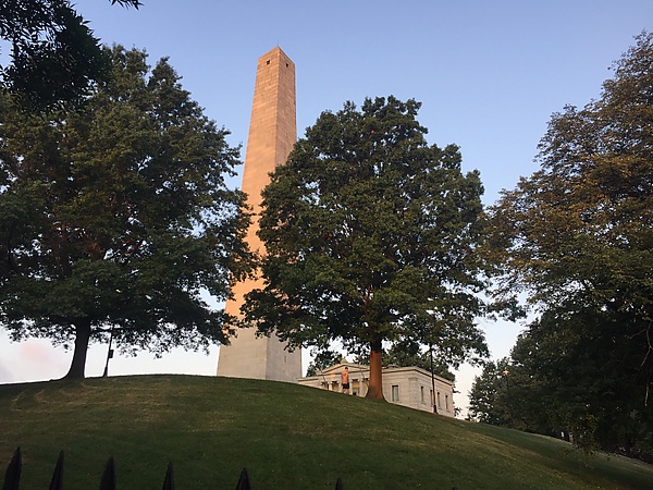 В июле 1828 года был закончен фундамент, но затем у проекта начались финансовые трудности, строительство задержалось на несколько лет, и только в мае 1841 года работы были возобновлены, а 23 июля 1842 года был положен последний камень. Общая высота монумента составила 221 фут (67,3 метра)[77].