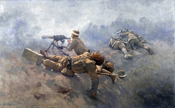 После полутора часа шквального огня, турецкая, артиллерия перенесла огонь вглубь греческого расположения и в атаку пошла пехота.