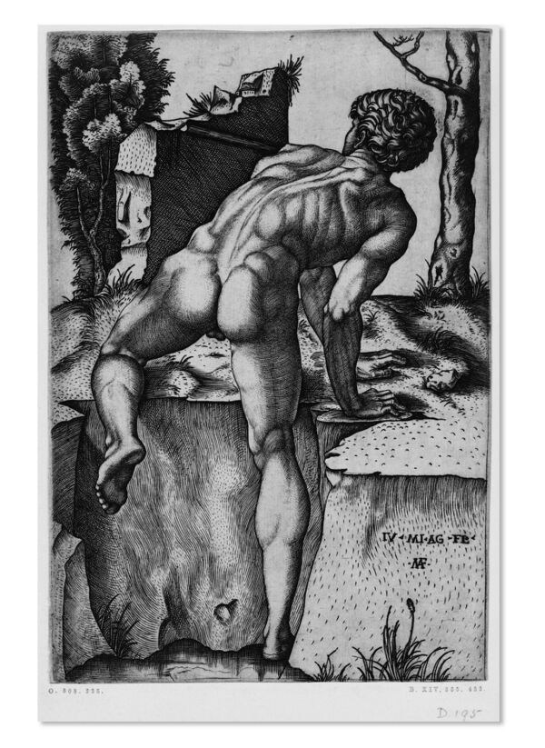Поскольку картон не сохранился, мы можем судить о нем лишь по описаниям современников, в частности, Дж. Вазари и Б. Челлини, а также по оригинальным подготовительным наброскам, копиям, сделанным учениками с различных частей картона и гравюрам Маркантонио Раймонди и Агостино Венециано. Лучшее представление о замысле художника даёт гризайль, выполненная Аристотелем да Сангалло и хранящаяся ныне в собрании Холкгэм Холл (Англия)[10].