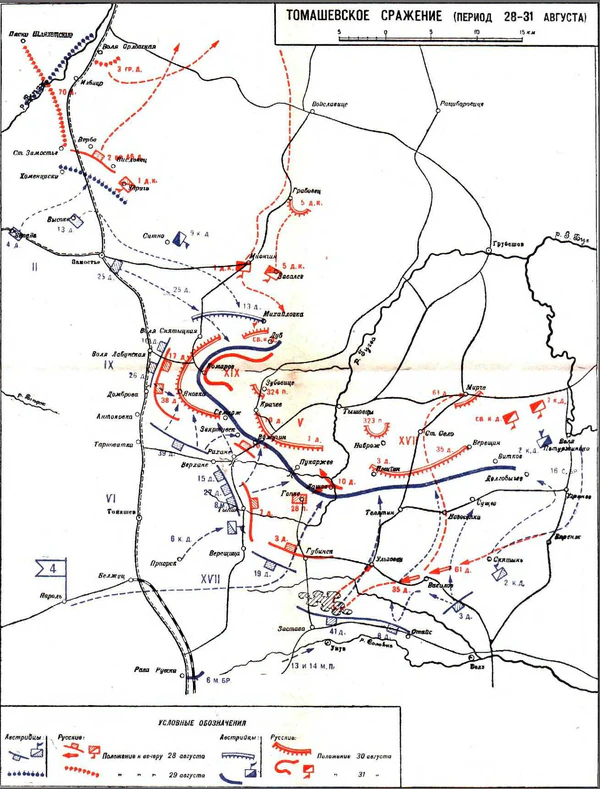 26 августа (8 сентября) 1914 главнокомандующий Юго-Западным фронтом издал директиву, согласно которой, ввиду выяснившегося развертывания австрийцев западнее, чем это считалось первоначально, 4-я и 5-я армии должны были повернуть на запад и продолжать наступление.