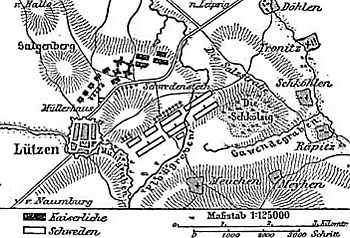 12 ноября обе армии встретились близ Наумбурга. Однако ни те, ни другие поначалу не желали генерального сражения, расположась в полевых лагерях на некотором расстоянии друг от друга. Валленштейн полагал, что шведы сильнее пострадают от трудностей надвигающейся зимы, Густав Адольф ждал подкреплений.
