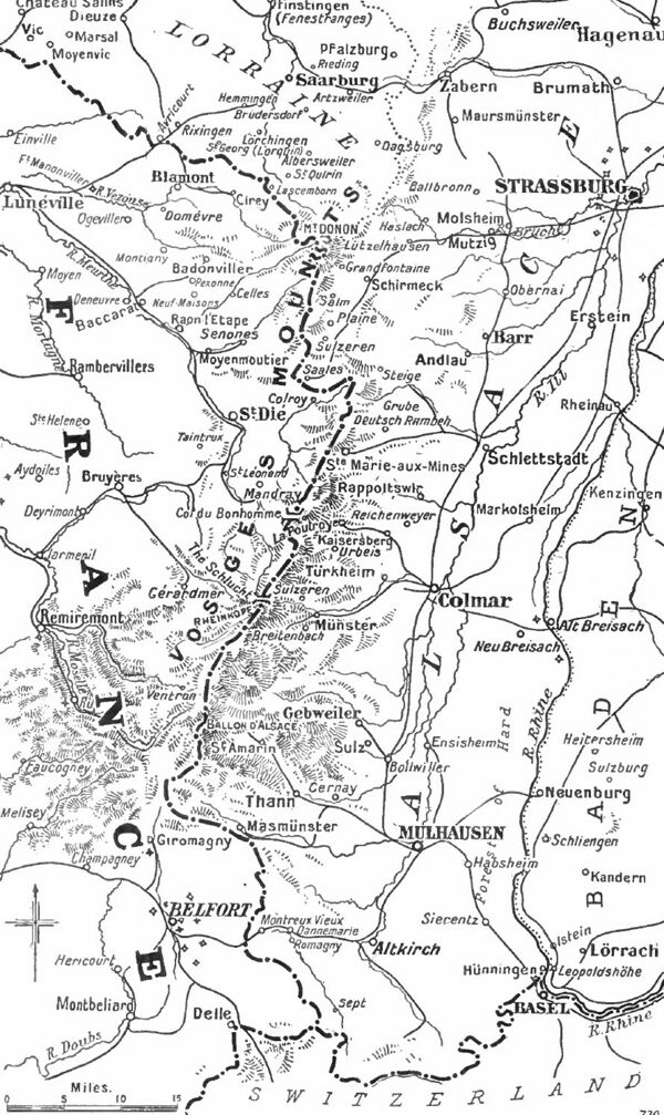 Французское командование уделяло главное внимание именно захвату Эльзаса и Лотарингии, поэтому именно здесь развернуло наступательные действия. Первые бои между наступавшими французскими войсками и германской армией начались в 5 часов утра 7 августа. После первоначальных боёв французам удалось захватить город Мюльхаузен. Занятие города французскими войсками было воспринято во Франции как праздник. Однако 9 августа из Страсбурга прибыли германские резервы, и немцы начали теснить французские войска.