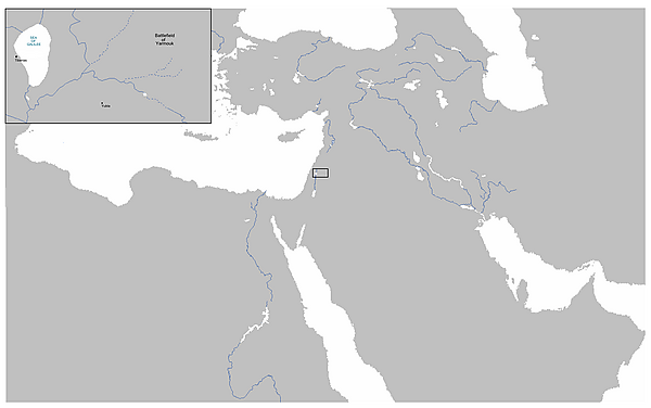 В 634 году мусульмане завоевали Дамаск и большинство городов южной Сирии. Византийский император Ираклий I собрал армию — численностью в 200 000 ( 100 000 византийцев и 100 000 армян) человек для отвоевания Сирии. Византийские авторы упоминают двух командующих этой армией — сакеллария (казначея) евнуха Феодора Трифориуса и Ваана (Вагана армянский полководец). Мусульмане противопоставили им 20 000 воинов. Командовал этим войском Халид ибн аль-Валид, один из сподвижников Мухаммада.