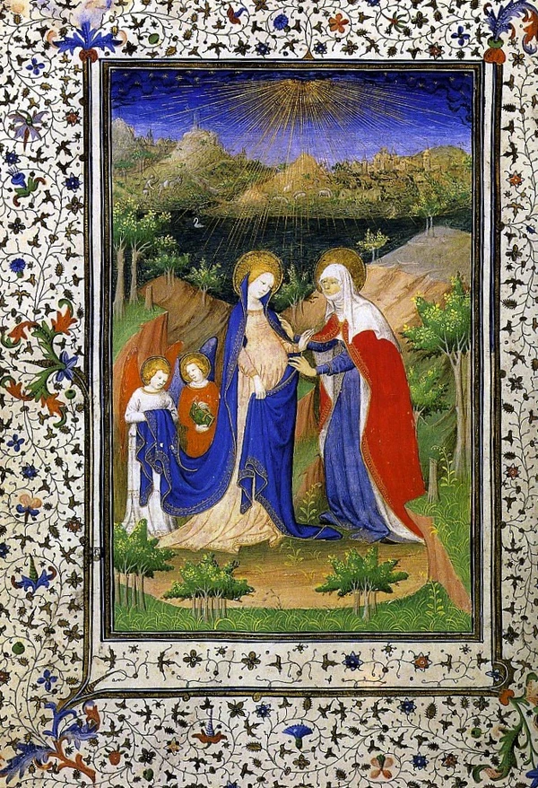 Семейный характер картины противоречит её литургическому значению. Голубь является напоминанием Евхаристии и мессы. Искусствовед Лотте Бранд Филипп отмечает, что на протяжении XV века «евхаристические сосуды, выполненные в виде голубей и подвешенные над алтарями,… опускали в момент пресуществления». Предполагается, что как Святой Дух наполняет хлеб и вино, также он даёт жизнь чреву Девы Марии[10]. Мария несёт в себе Тело и Кровь Господа, её посещают три священнических ангела[10]. Роль Марии заключается в том, чтобы родить «Спасителя Мира»; а ангелы «поддерживают, навещают и защищают её лоно»[5]. С рождением Христа её «чудотворное чрево прошло финальное испытание», чтобы затем стать объектом почитания[4].