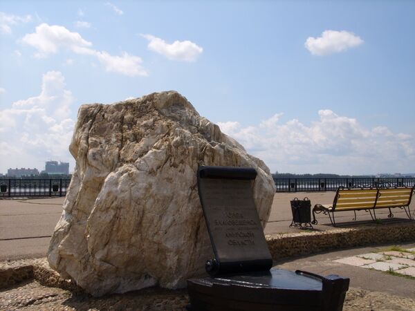 На набережной реки Амур воздвигнут памятник основателю города генерал-губернатору Восточной Сибири Муравьёву-Амурскому.
