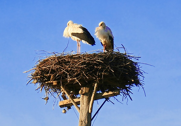 Белорусы, украинцы и поляки в этот день встречали аистов[26]. На западе Полесья (Брестская, Волынская обл.) и в примыкающем к нему районах польского Подлясья ко дню Благовещенья готовили обрядовое печенье, изображающее аиста (бусела), его лапу или её оттиском на поверхности. Это связано с поверьем, что ко дню Благовещения аист возвращается из тёплых стран и успевает отложить в гнездо первое яйцо. И якобы аист даже думает: «Хоть льдом подавлюсь, а на Благовещенье вернусь» (Витебская обл.). В западно-белорусском Полесье говорили: «Как уже аиста кто самый первый увидел — то он первый весну встретил». Хлебцы называются: бу́слева ла́па, буськовы крылья, бусел, птушки, басманы, галёпы (от нога, голень)[27].