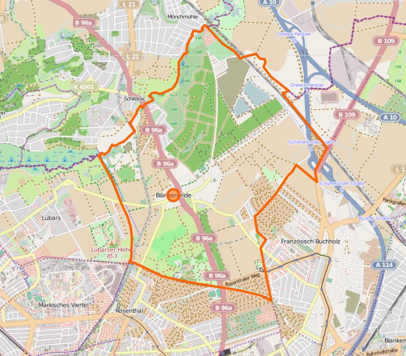 В названии района слово фельд (нем. Feld) означает поле. Действительно этот район до настоящего времени окружён со всех сторон полями и озёрами[1]. Плотность населения в Бланкенфельде — 144 человека на квадратный километр — наименьшая по сравнению со всеми остальными районами Берлина.