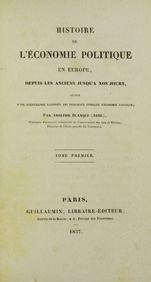 - Бланки Ж. История политической экономии в Европе с древнейших времён до настоящего времени. В 2-х т. — М., 2012.