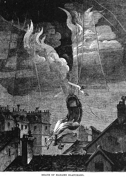 Возникла ужасная пауза, когда мадам Бланшар, запутавшись в сетке своего воздушного шара, упала на наклонную крышу дома на Рю де Прованс, и затем на мостовую, откуда потом было поднято её разбившееся тело.