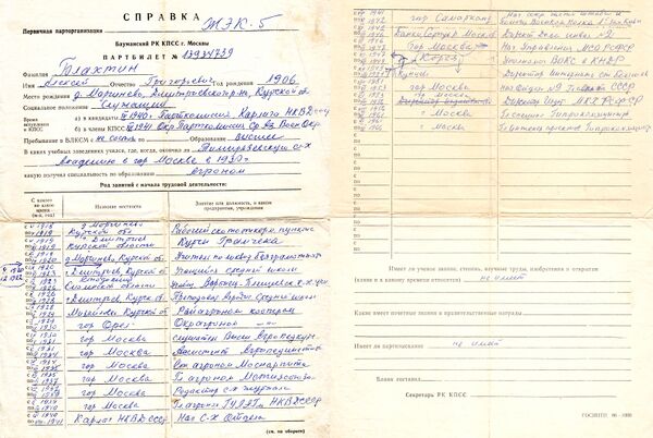 Более 10 лет Секретарь партбюро ЖЭК № 5 Бауманского района Москвы. Более 30 лет на выборной партийной работе.