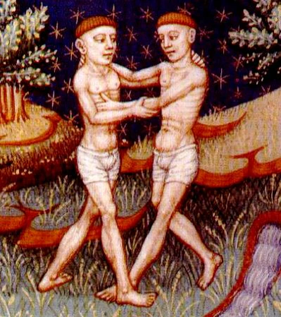 Близнецов изображают как братьев-близнецов, обычно держащихся за руки[5].