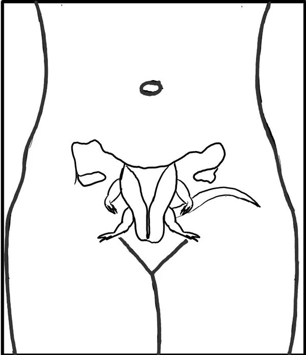 В середине боков женщины находится матка, женский внутренний орган, очень похожий на животное; поскольку она сама перемещается туда и сюда в боках, а также вверх по прямой линии до нижней части грудной клетки, а также косо вправо или влево, к печени или селезёнке, и она также подвержена пролапсу вниз, и, одним словом, она совершенно непредсказуема. Она также любит ароматные запахи и движется к ним; она испытывает отвращение к зловонным запахам и убегает от них; в целом матка похожа на животное внутри животного.