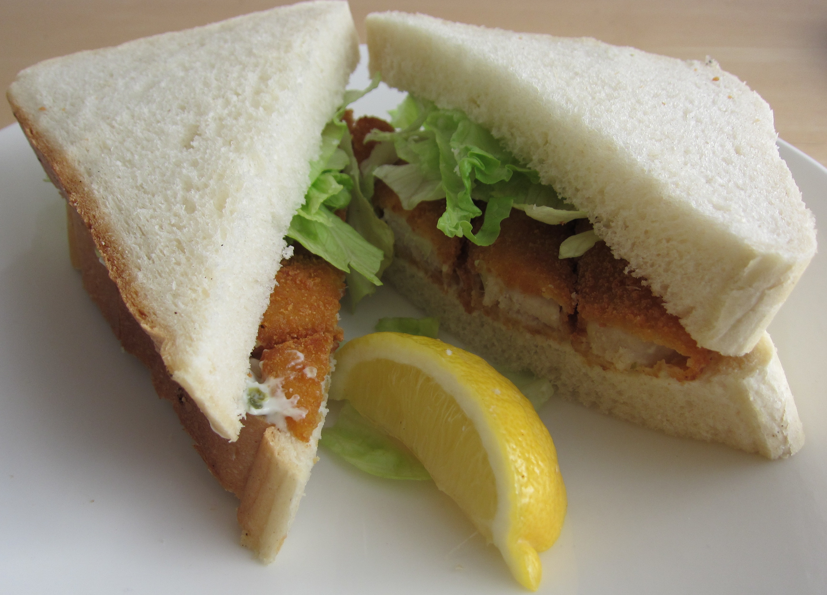 Сэндвич с рыбными палочками. | Начинка (рыбные палочки, иногда с листьями салата, соусом Тартар, кетчупом или майонезом), хлеб. | Иногда дополнительно долька лимона; быстрое питание. | |
