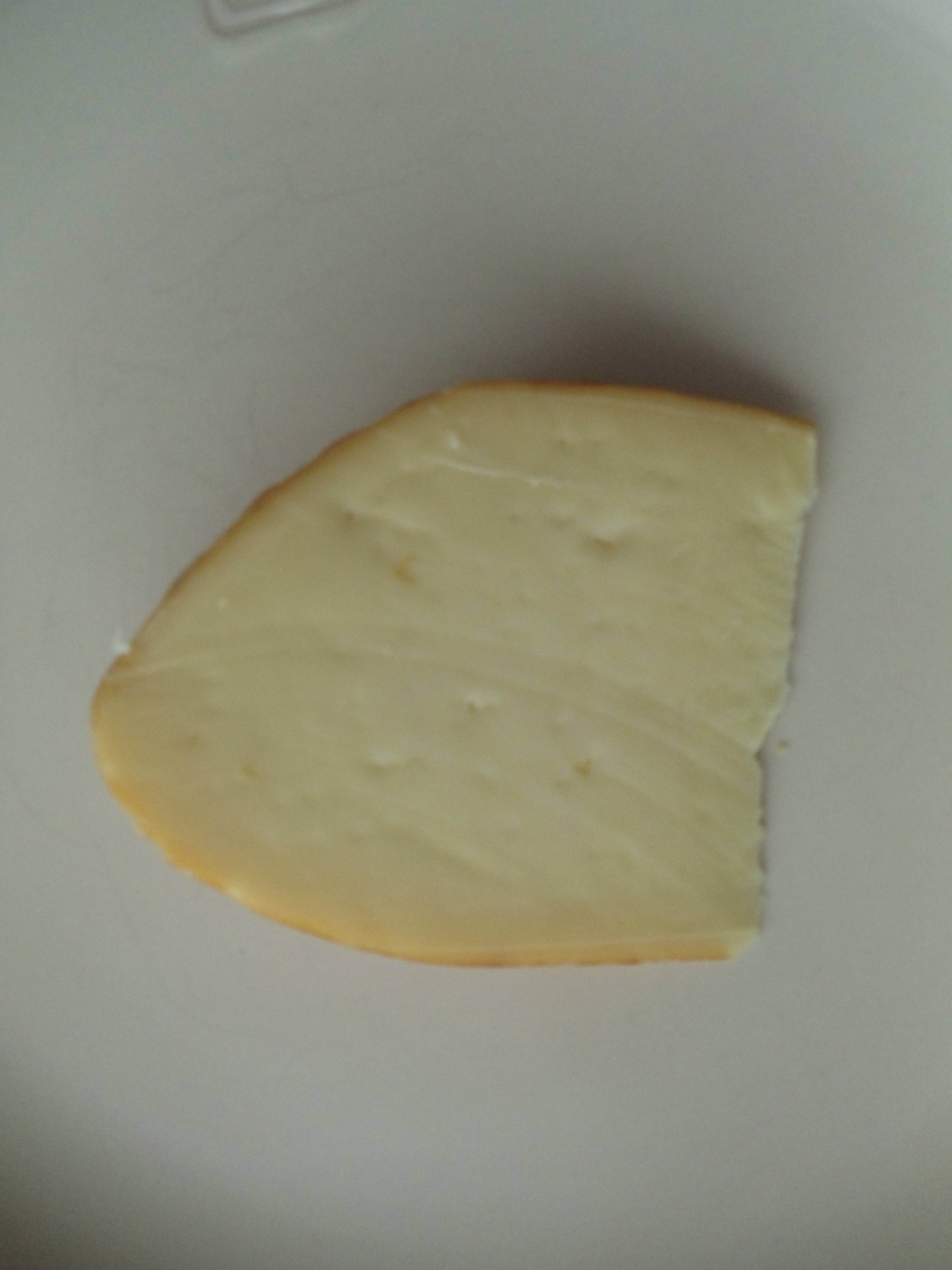 полумягкий, крошащийся, с возрастом более кремовый, цилиндрической формы, покрытой коркой |