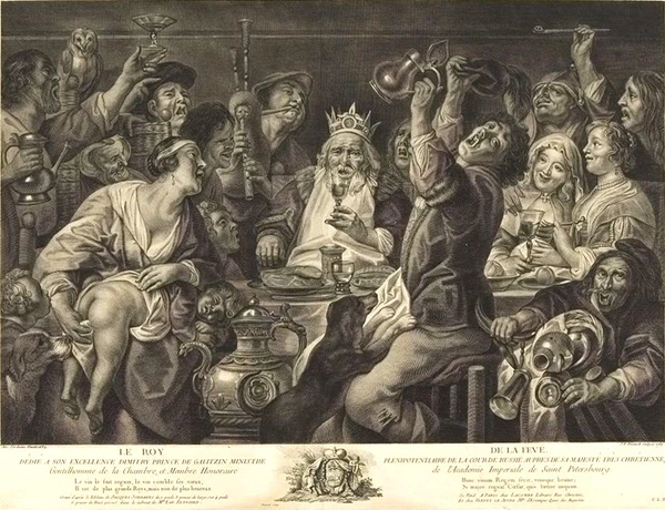 Картина изображает застолье в честь праздника Богоявления, отмечаемого 6 января. В этот день в католических странах к праздничному столу подавался особый пирог, содержащий «сюрприз» в виде запечённого боба, ореха, фигурки Христа или святых, монетки. Тот, кому доставался «сюрприз», провозглашался Бобовым королём и возглавлял празднество. Одной из традиций было провозглашение Бобовым королём королевы праздника и в этот момент все присутствующие кричали «Король пьёт! Да здравствует король!» — отсюда возникло второе название картины.