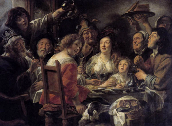 Как колорист Йорданс раскрывается здесь во всём блеске своего зрелого мастерства. Его краски, не утрачивая звучности, приобретают более глубокий бархатистый тон и обогащаются множеством оттенков. Отдельные яркие цветовые пятна художник подчиняет теперь общему, всё смягчающему и как бы растворяющему в себе золотисто-коричневому тону. Плотность, упругость, материальную вещественность форм он передаёт не мощными пастозными мазками жирной краски… а нежными переходами цвета, прибегая к лессировкам[3].