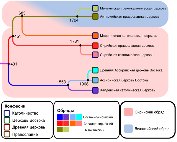 Церковь Востока отвергла Третий Вселенский собор и приняла учение сформированное Несторием и Феодором Мопсуестийским, из-за чего Ассирийскую церковь Востока часто именуют «несторианской»[3]. Первые попытки объединения с Церковью Востока начались в XIII веке католическими миссионерами[4]. На Ферраро-Флорентийском соборе в 1445 году был принят декрет «Benedictus sit Deus» об объединении с несторианами Кипра[5]. В 1551 году католикос Мар Шимун VII в соответствии со сложившейся традицией наследования патриаршего престола от дяди к племяннику, назначил своим преемником ребёнка восьмилетнего возраста[6]. В 1552 году в церкви Востока возник раскол из-за недовольства нескольких епископов правилом наследования патриаршего престола. В результате этого патриархом был избран монах из монастыря Раббана Ормизда Иоанн (Юханнан) Сулака, который при поддержке францисканцев обратился в Рим для утверждения своего избрания. Папа Юлий III провозгласил епископа Сулаку «патриархом восточных сирийцев»[5][7]. Таким образом в церкви Востока появилась группа верующих, находящаяся в унии с Римско-католической церковью. В 1672 году последователи Сулаки отказались от унии с католиками, однако преемство рукоположений католиков-халдеев была продолжена. В 1830 году папа Пий VIII объединил различные группы ассирийских униатов в Халдейскую католическую церковь. Также деятельность католических миссионеров в Индии привела к унии части верующих Церкви Востока с Римом и образованию Сиро-малабарской католической церкви[5][8].
