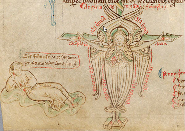 Сам спорный образ не сохранился, но известное его описание, сохранившееся в сборнике XVI века[7]. На иконе Иисус Христос изображён трижды. Сперва в образе Давидовом, стоящим за Крестом. Рука Христа одета в железную перчатку и сжимает меч. При этом фигура облачена в святительские одежды. Второй образ — на верхней перекладине Креста. Это огненный юноша в царском венце и тоже с мечом. Наконец, ниже на кресте изображён пригвождённый к Кресту серафим, который символизирует Христа. Образ распятого серафима навеян видением Франциска Ассизского[8]. Н. К. Голейзовский предполагает, что эта сложная аллегорическая композиция появилась в связи с ересью стригольников приблизительно в тридцатых годах XV века как аргумент в споре с еретиками[9].