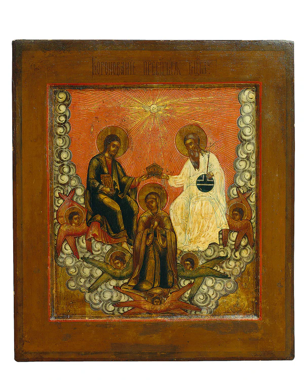 Несмотря на явное соборное запрещение, этот образ прижился в русской иконографии и известен как Троица Новозаветная. Троица Новозаветная встречается в двух вариантах: «Отечество», на которой Сын Божий в образе юного Христа изображался сидящим на коленях у Бога-Отца, и «Сопрестолье», на которой равновеликие фигуры Бога-Отца и Бога-Сына расположены рядом. Ипостась Святого Духа в виде голубя располагается выше и между фигурами Отца и Сына[13]. Обе композиции в XV—XVI веках получили распространение на православном Востоке.