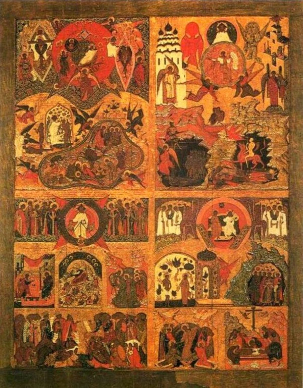 Возникновение нового типа иконописи произошло в XV веке на православном Востоке, на территориях бывшей Византийской империи и на Балканах. В это время там появляются новые иконописные сюжеты, такие как «София — Премудрость Божия», «Единородный Сыне», «Шестоднев», «Отче наш», «Отечество», «Похвала Божией Матери», «Неопалимая купина», «Собор Божией матери», «Суббота всех святых», «Литургия» и подобные им. К новым композициям добавляются и новые чины: Пророческие, Праотцев, в том числе и немыслимые для Византии чины древних языческих мудрецов[3] и сивилл[4]. Источником для новых изображений послужили миниатюры рукописей, которые теперь перекочевали на иконные доски.