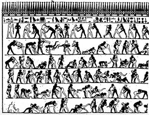 - Греко-римская борьба́ (классическая борьба, французская борьба, спортивная борьба греко-римского стиля) — европейский вид единоборства, в которой спортсмен должен, с помощью определённого арсенала технических действий (приёмов), вывести соперника из равновесия и прижать лопатками к ковру. В греко-римской борьбе запрещены технические действия ногами (зацепы, подножки, подсечки) и захваты ног руками. Классическая борьба родилась в Древней Греции и получила развитие в Римской империи, а современный вид греко-римской борьбы сформировался во Франции в первой половине XIX века. И уже, когда стали возрождаться современные Олимпийские игры, греко-римская борьба являлась одним из самых популярных видов спорта на планете и поэтому была включена в программу Игр I Олимпиады 1896 года[11], чемпионаты мира с 1904, Европы — с 1898. В Международной федерации борьбы — ФИЛА (FILA; основана в 1912 году) свыше 120 стран (1997).